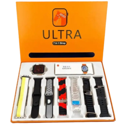 Experience the ultimate in style and functionality with the 7 In 1 Ultra Smart Watch, featuring a 2.1-inch Full HD screen, wireless charging, 7 interchangeable straps, and a waterproof design for all your adventures.