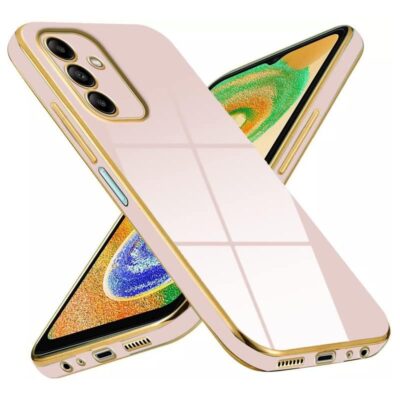 Avzax Colored Chrome Back Case Cover for Samsung Galaxy A04s | Pink with Gold Edges | Soft & Anti-Shock